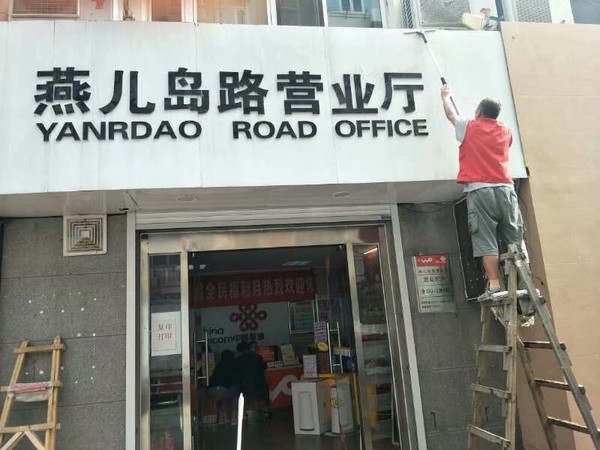 青島萬家潔保潔公司專業(yè)清潔門頭牌匾,針對如玻璃材質(zhì)、金屬材質(zhì)、pvc材質(zhì),鋁塑板等及各種污漬如:鐵銹、水漬等都有專業(yè)的工具及除漬劑進行專業(yè)的清潔。